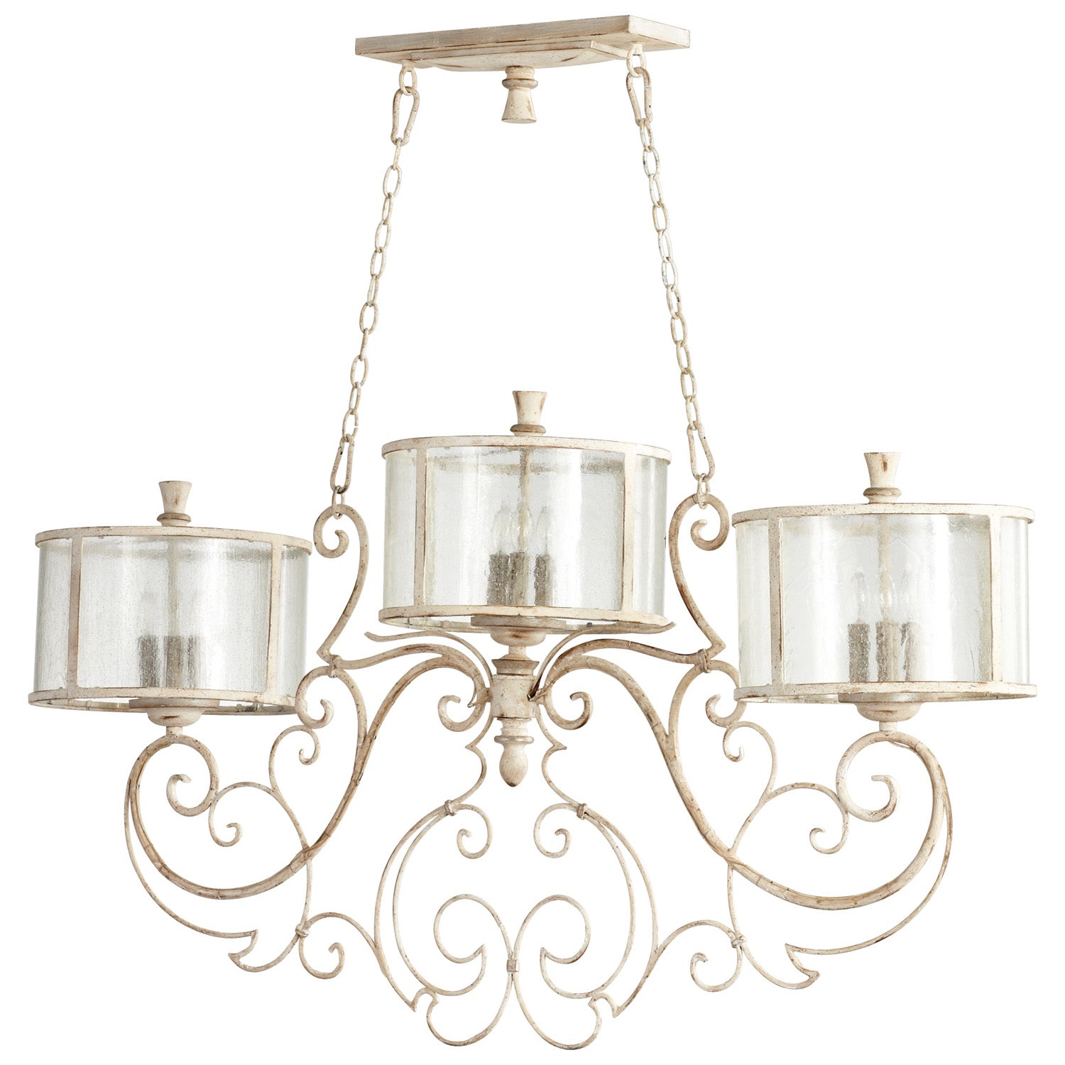 Exquisite and ornate, this nine light glass island will add elegance to any entryway. Intricate, thin arms complement tiers of exposed candelabras, radiating a magical quality.