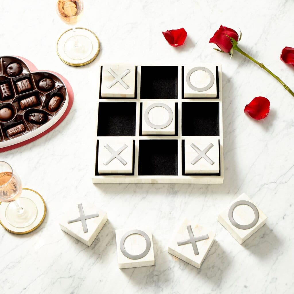 Turn a classic children`s game into a bold art piece with this tic-tac-toe bone and wood sculpture piece. Bring a dose of character and entertain friends and family in the same moment with this fully functional game of X`s and O`s.