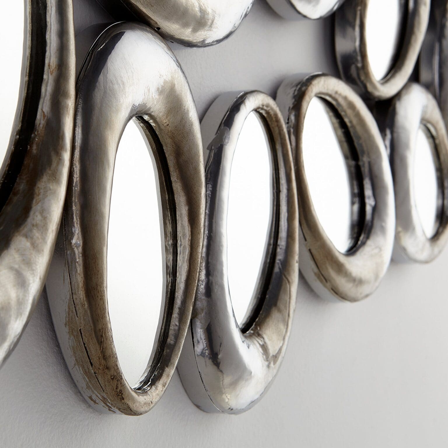 Whimsical and sophisticated, this posh wall mirror features silver geometric ovals in an abstract arrangement. This modern twist on wall art will add some depth and character to home living space or lined down the hall of any commercial setting. Display in multiples to create your own personal art installation.