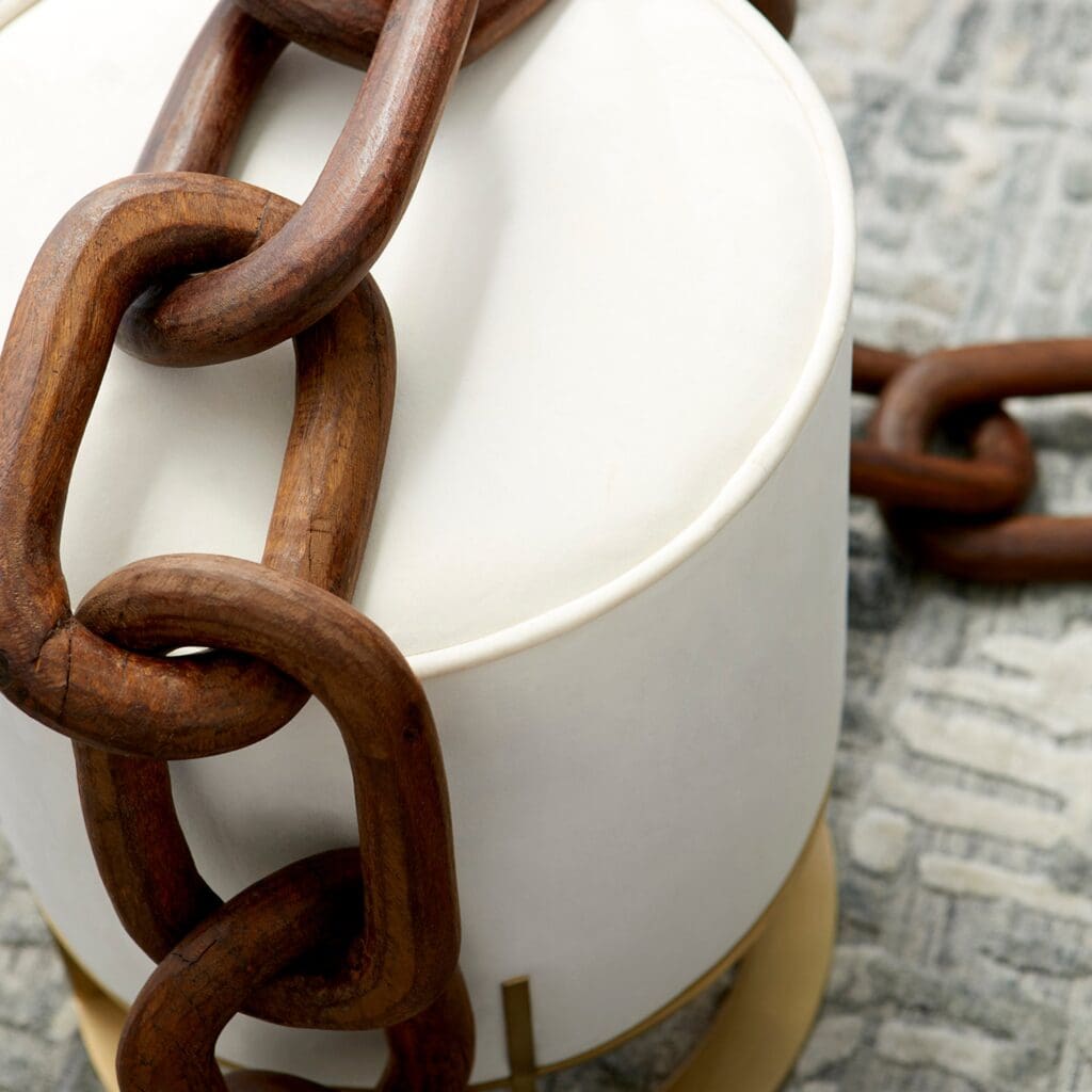 Truly a unique accent, the Cadena sculpture is an oversized wooden replica of links of chain. The scale of the piece is what really makes it standout as a peculiar accent, one that will surely turn some heads and generate buzz by any guests at your next home gathering.