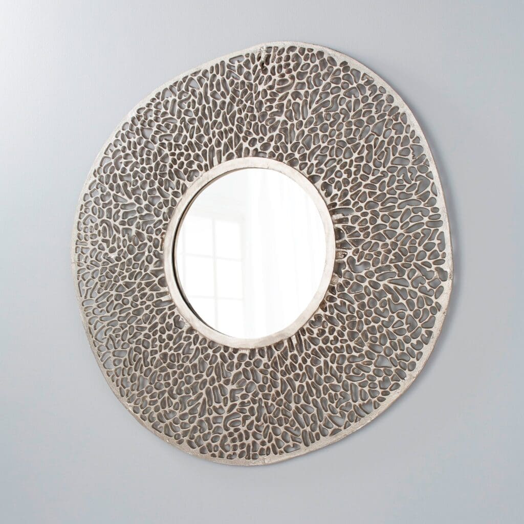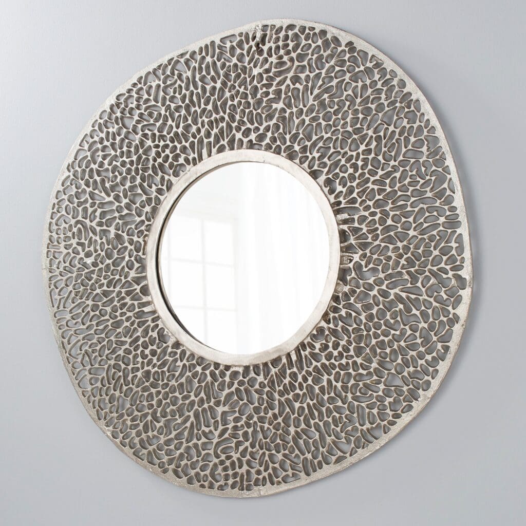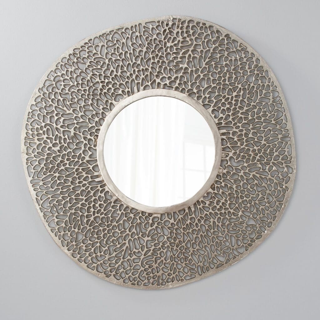 Bring elegance into your dining room or hallway with this coral inspired classic gilded mirror. The porous frame is crafted from aluminum cast in gold. An offset rounded form adds an elevated touch to the unusual. Perfect for any living space with a luxurious lean, but also suited for commercial or office spaces with a fun and eclectic ensembles.