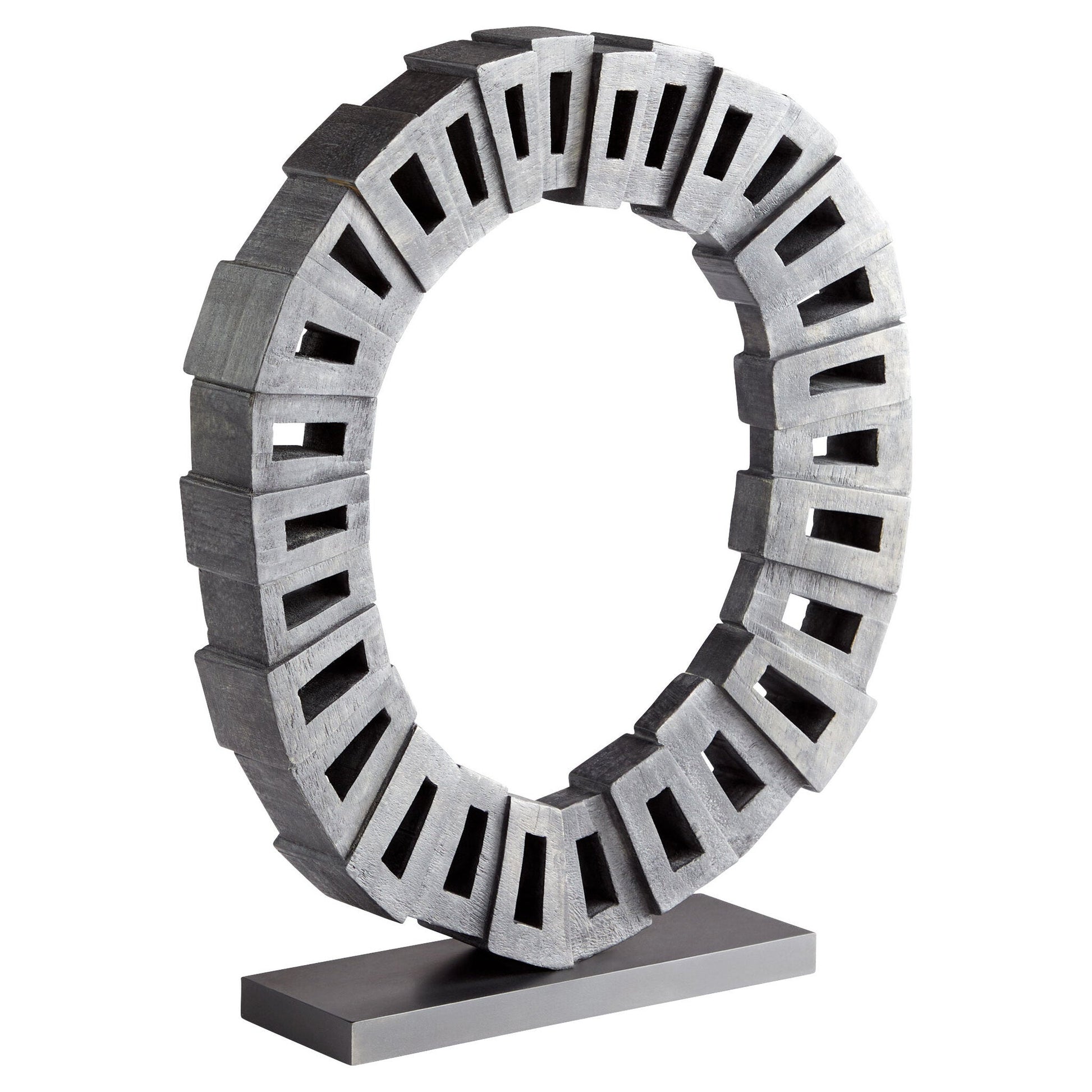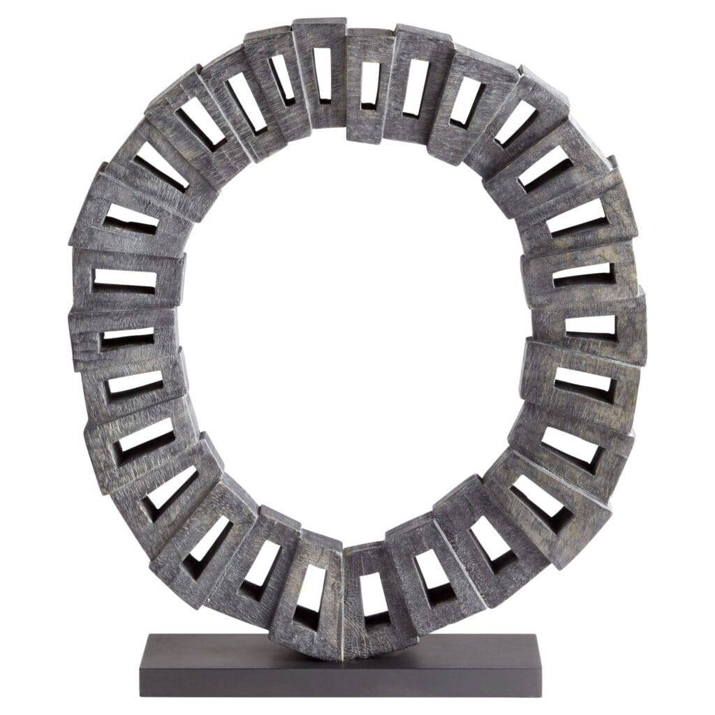 The Josephine sculpture is composed of several geometric shapes fused together to form a closed circle, reminiscent of ancient Roman arches. The offset shapes are carved from 100% Ardu wood and washed in a black finishing coat, further radiating a sense of enduring strength and integrity. Accent any room or space with the Josephine sculpture, as it is sure to captivate its audience.