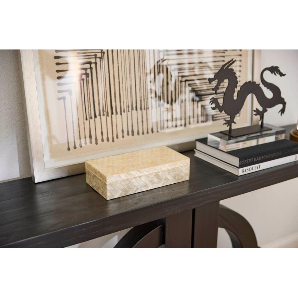 The gold-finished Haku and black-finished Shenron Dragon Sculpture celebrate the rich tradition of Chinoiserie dragons while infusing a modern twist. Crafted from iron sheet, these sculpture symbolize strength, power, and good fortune. The modern twist is seen in their adaptability: they can be used in either a left or right-facing orientation. This feature allows placement customization, adding versatility and a sense of freedom. The year 2024, being the Year of the Dragon, enhances the cultural significance of the Haku and Shenron Dragon Sculpture, aligning the collection with the profound and auspicious symbolism of the dragon in the Chinese zodiac.