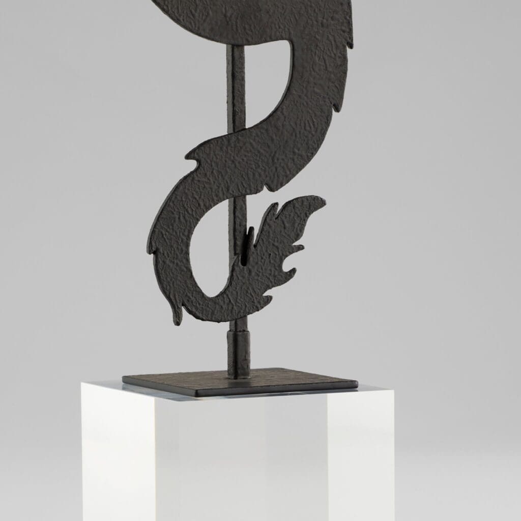 The gold-finished Haku and black-finished Shenron Dragon Sculpture celebrate the rich tradition of Chinoiserie dragons while infusing a modern twist. Crafted from iron sheet, these sculpture symbolize strength, power, and good fortune. The modern twist is seen in their adaptability: they can be used in either a left or right-facing orientation. This feature allows placement customization, adding versatility and a sense of freedom. The year 2024, being the Year of the Dragon, enhances the cultural significance of the Haku and Shenron Dragon Sculpture, aligning the collection with the profound and auspicious symbolism of the dragon in the Chinese zodiac.
