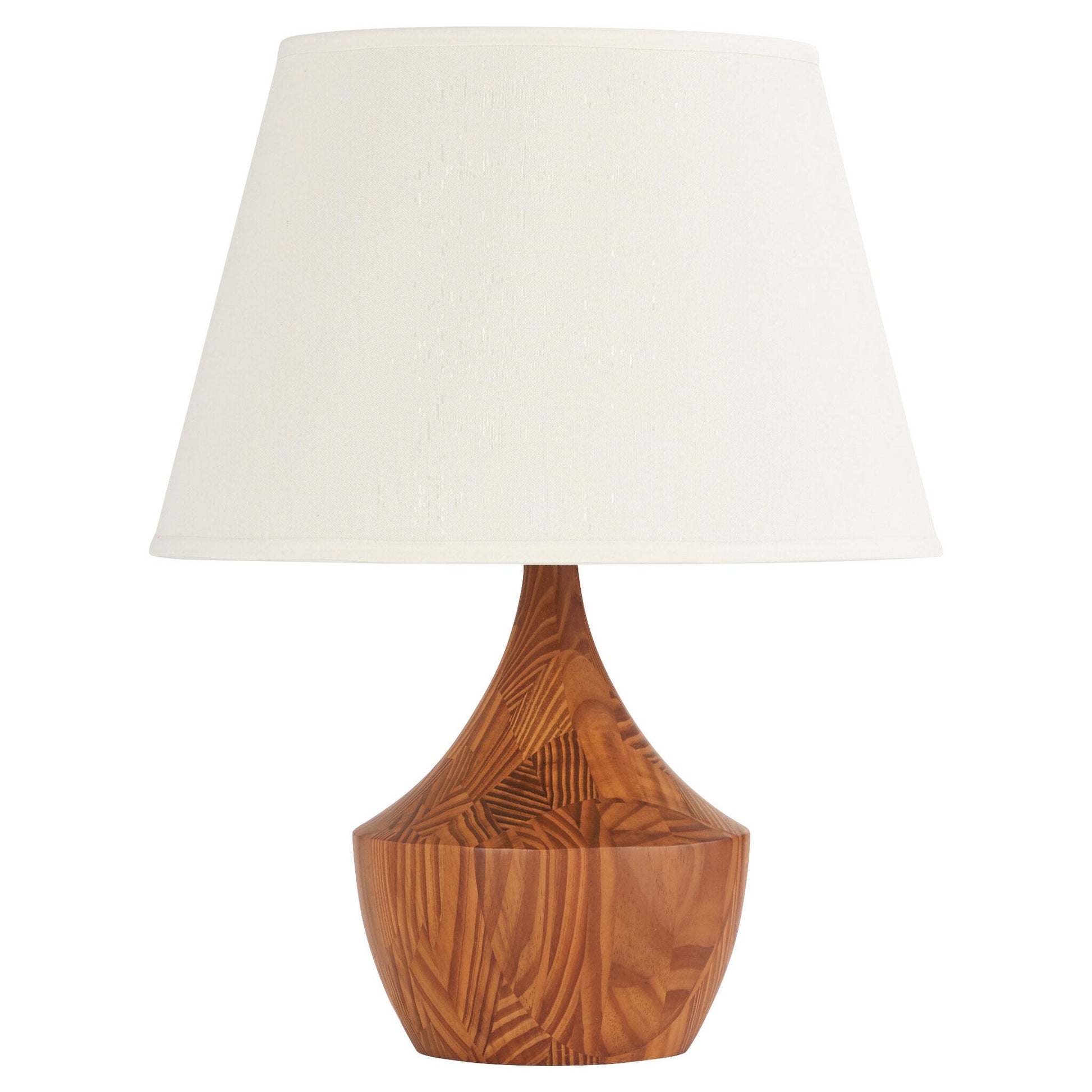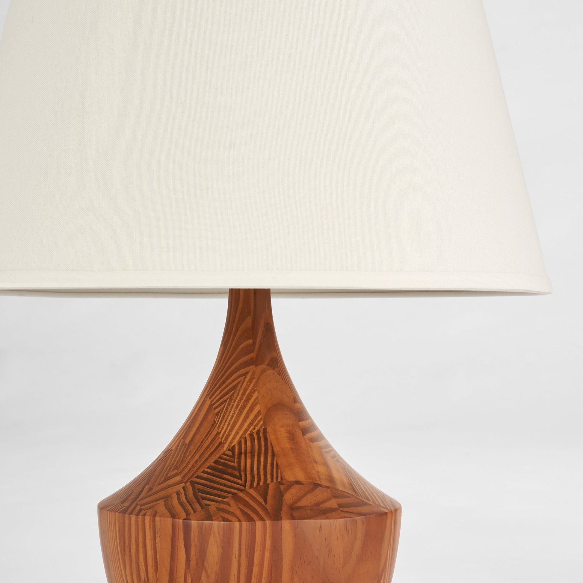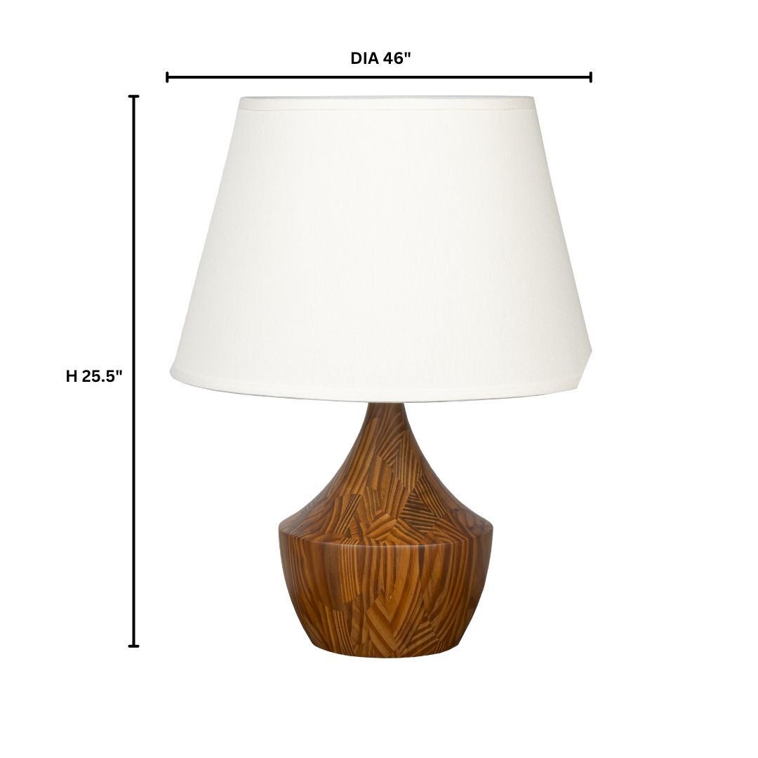 Cyan Design 11746 Emma Wood Natural Table Lamp - Natural Wood, White Linen Shade. The Emma table lamp’s design draws intrigue through its assymetrical, organic shape. Made from thermo-treated Taeda wood, this table lamp showcases the raw beauty of carved wood while retaining its integrity over time. It features an on/off switch on the cord and a white linen shade. Cyan Design MPN: 11746