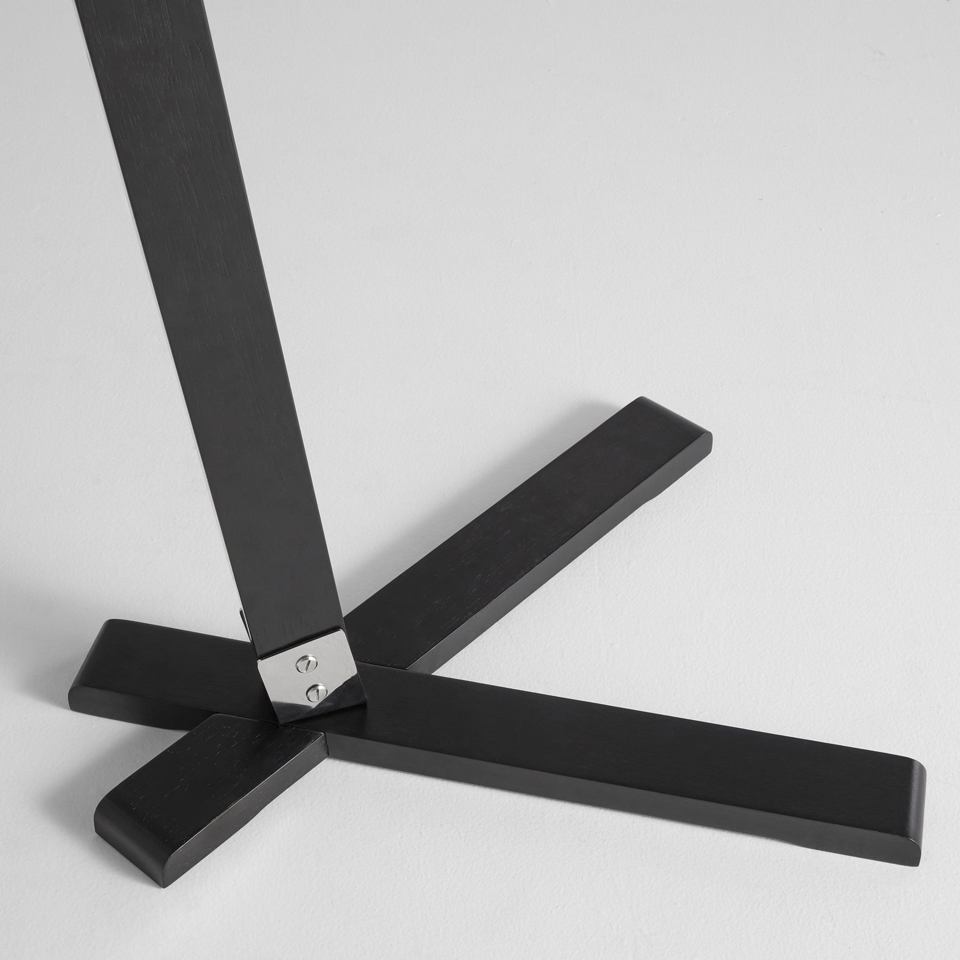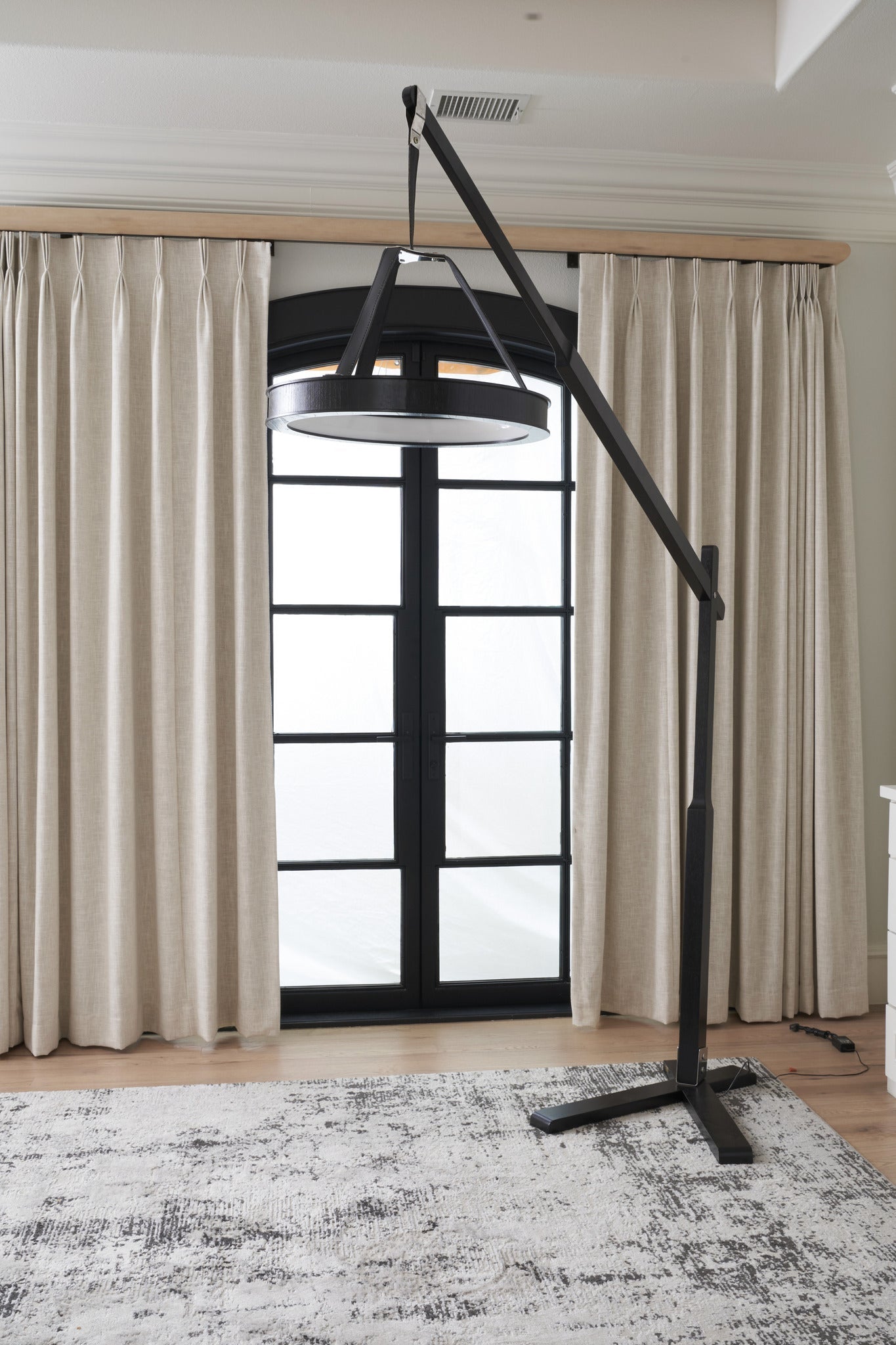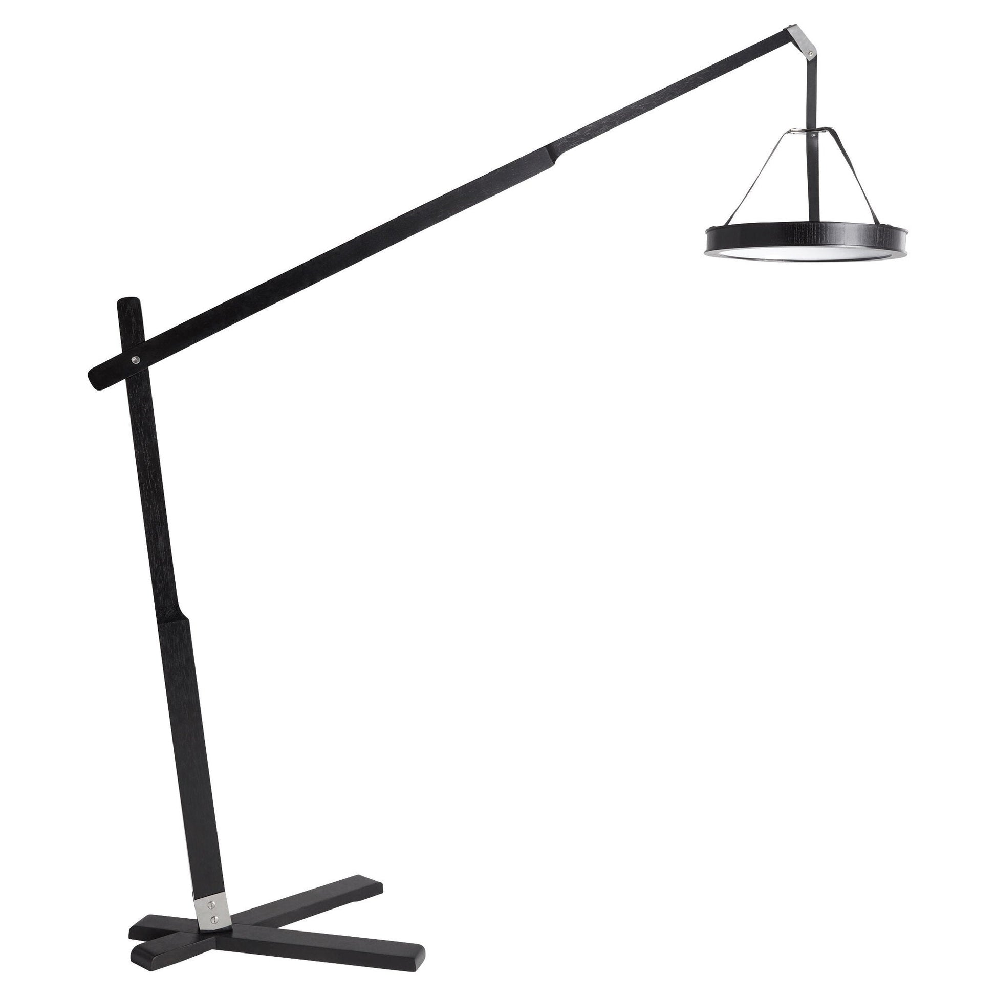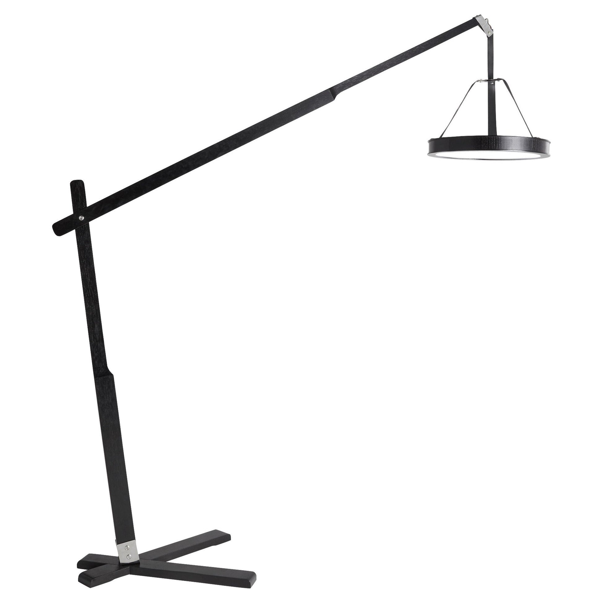 Cyan Design 11751 Elise Floor Lamp - Black. The Elise floor lamp, a remarkable addition to the Elevar collection, is a testament to the harmonious blend of design and sustainability. With articulating arms on the base, it adjusts to multiple positions, offering both functionality and style. An on-off switch at the base provides easy control. The lamp features an angular, industrial Grandis wood frame with a black lacquer finish supports a circular light source and black leather base. Cyan Design MPN: 11751