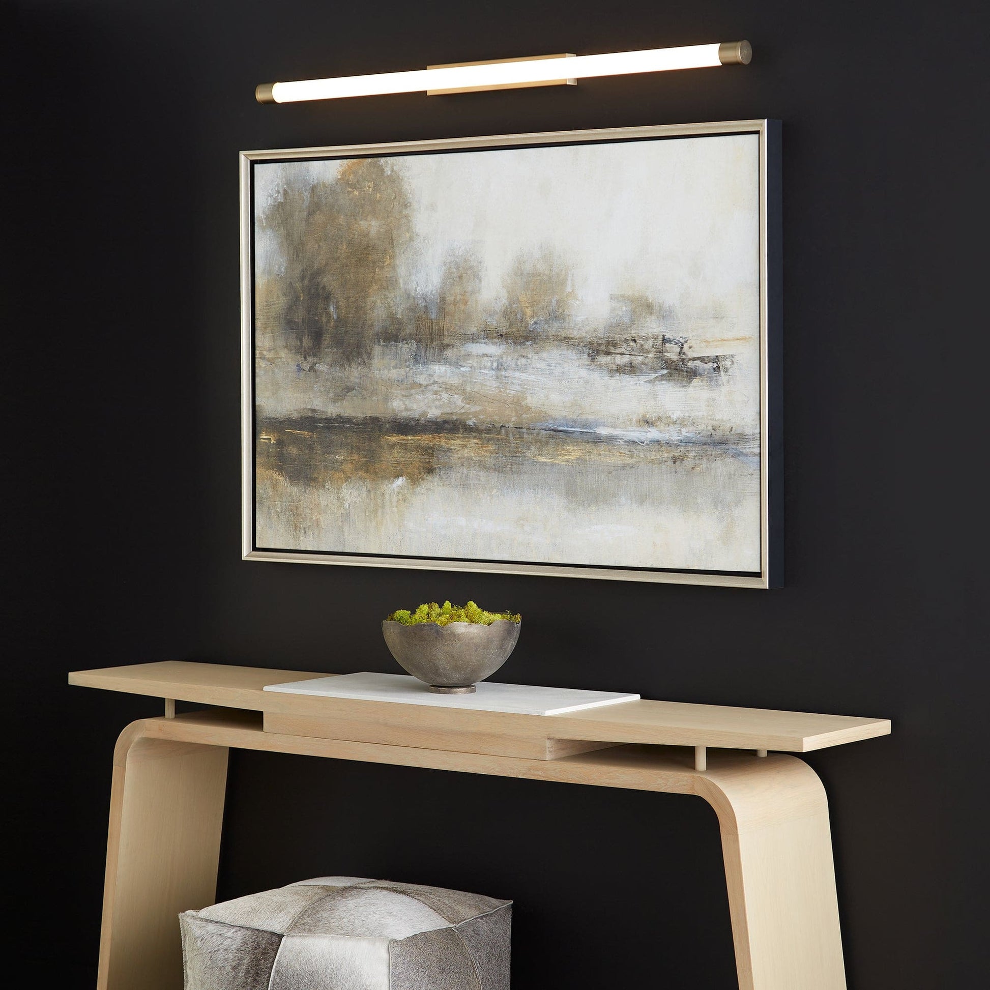 Introducing the Oxygen Lighting Modern LED Zenith II 3-559-35 Vanity Light Fixture, UL Damp Rated. This stunning fixture features an elegant Aged Brass finish combined with a Matte White Acrylic Diffuser, making it both stylish and functional.