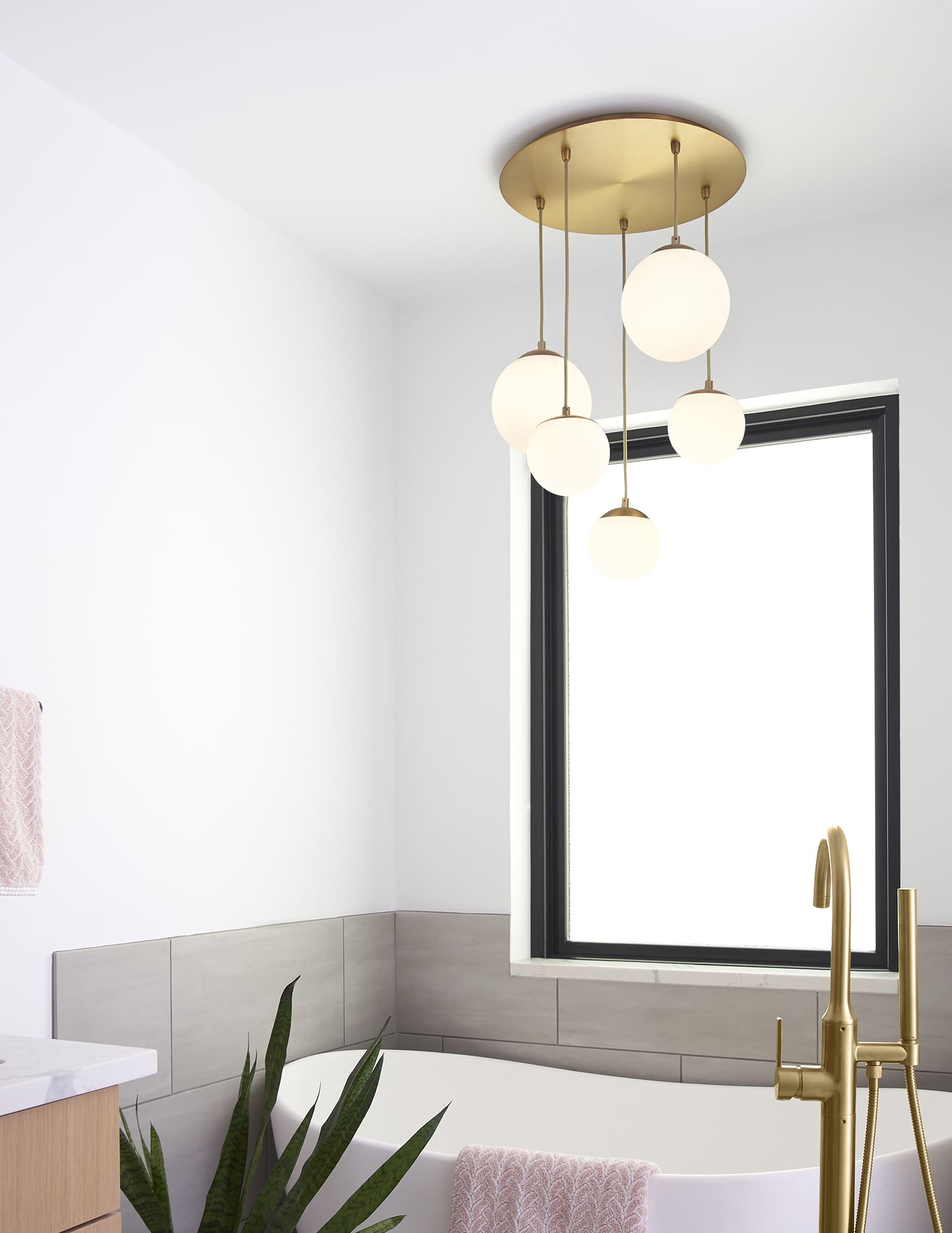 Mounting: Unit mounts to a 4” Octagonal J-Box, 4” Square J-Box with single device mud ring/ Deep J-Box (required to house driver) / Fixture supplied with 10' braided cord to customize hanging height / Optional Multi-Point canopies available