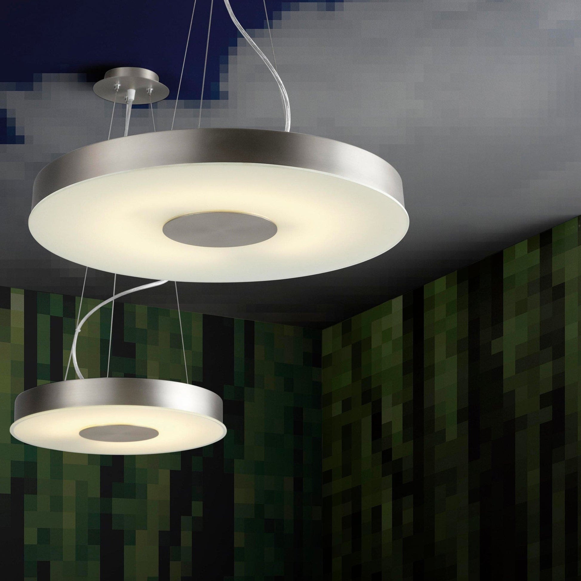 The Oxygen Lighting Modern LED Dione 32-665-35 is a stylish and energy-efficient ceiling mount light fixture, perfect for any space needing durable illumination. This fixture is UL damp rated and features a sleek satin nickel finish paired with a frosted glass diffuser.