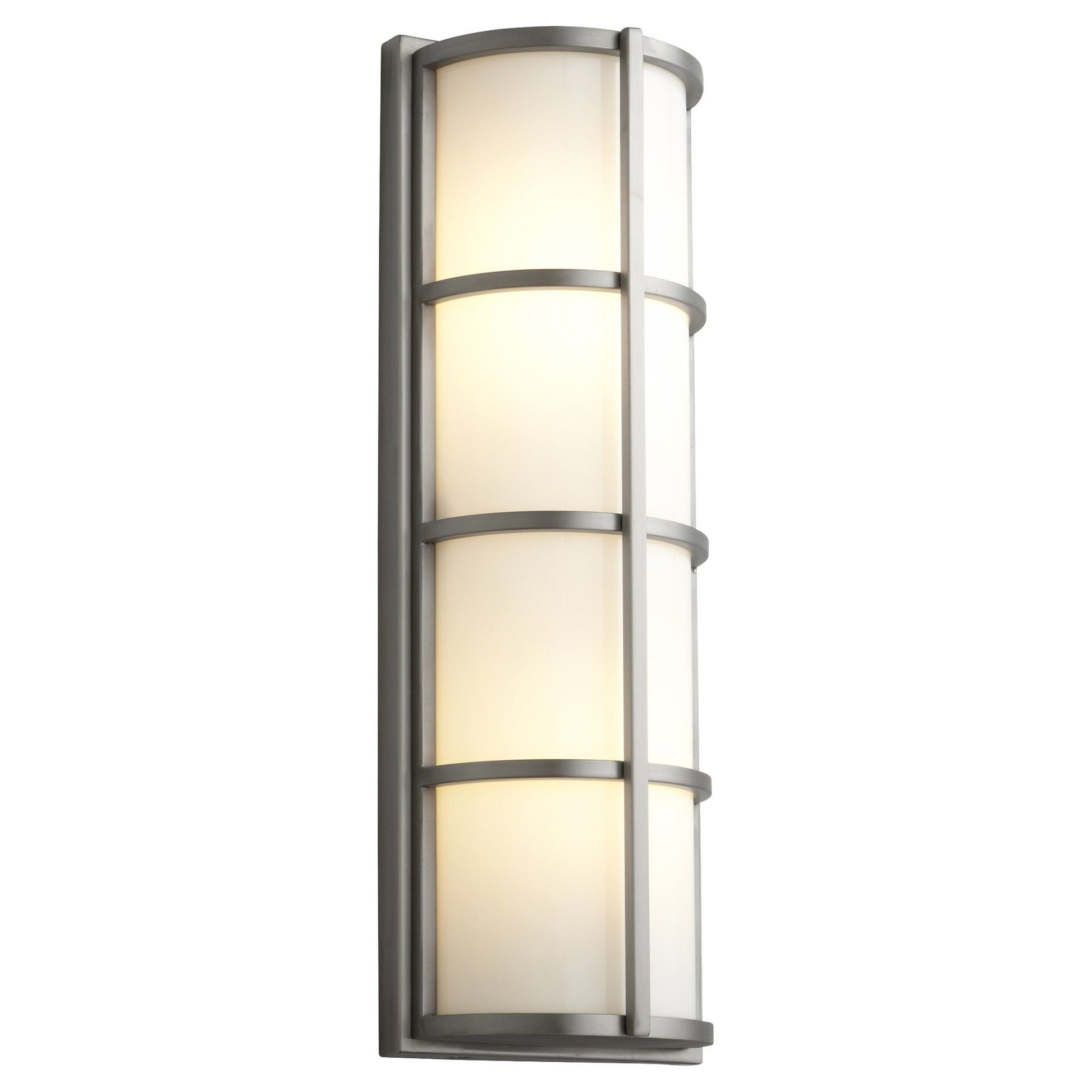 Oxygen Lighting LEDA 3-713-35224 Outdoor Wall Light Fixture, 3000K LED, UL Wet Rated - Satin Nickel, Matte White Acrylic Diffuser. The Oxygen LEDA exterior wall fixture features a 10.1 Watt LED Array with MPN: 3-713-35. The finish is Satin Nickel complemented by a Matte White Acrylic Diffuser