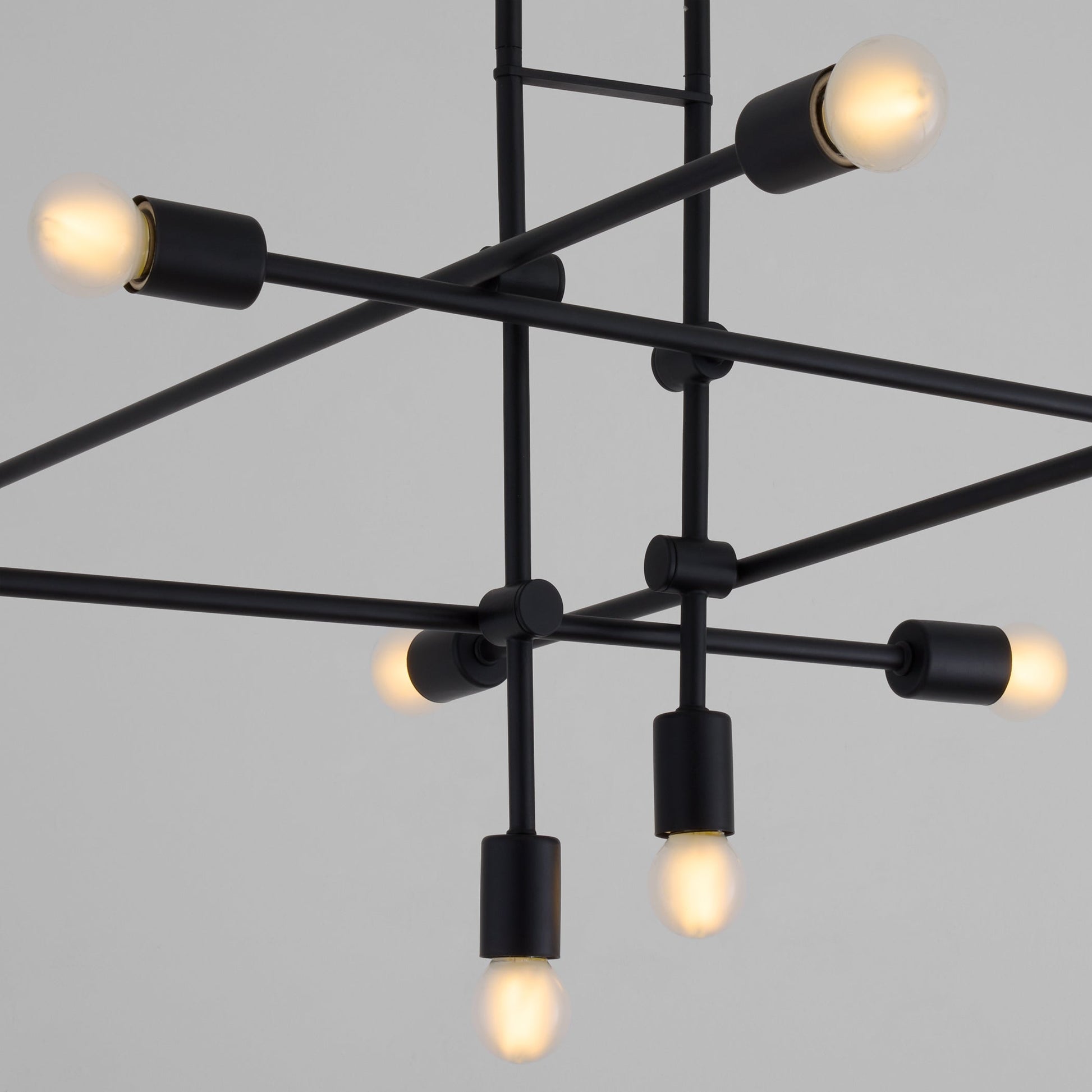 Oxygen Lighting Mika 3-697-15, Chandelier, UL Damp Rated, Black. This exquisite chandelier features a modern take on traditional design, characterized by its minimalist extended square that creates a striking architectural presence. Its outward-directed illumination provides a balanced, ambient glow, enhancing the space below.