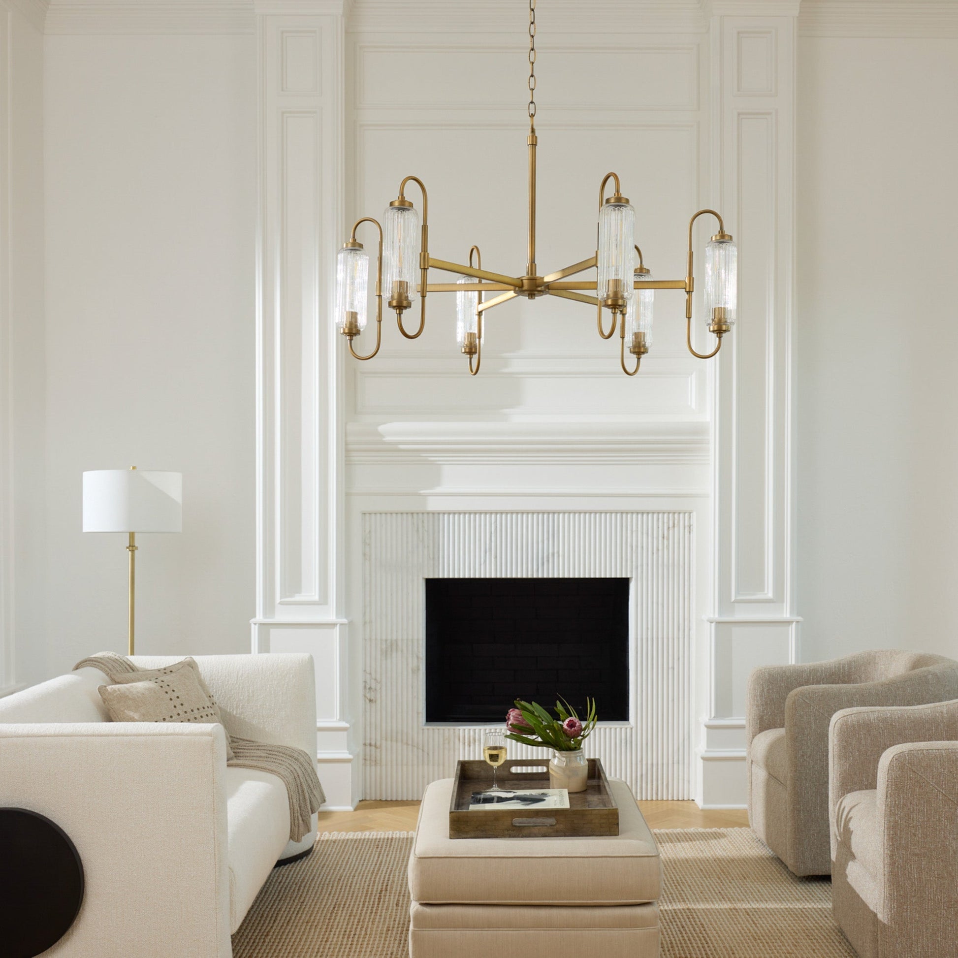 Quorum Whitmire 6015-8-47 Chandelier, UL Damp Rated, Brushed Brass. 60 Watt, 7.3 T10 Medium MPN: 6015-8-47 Whitmire