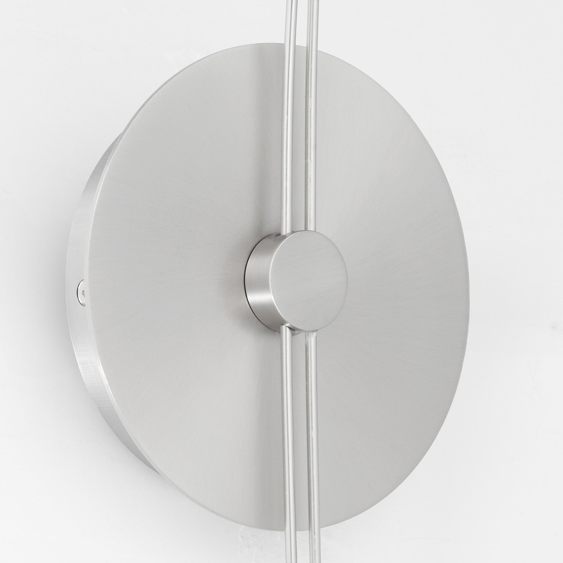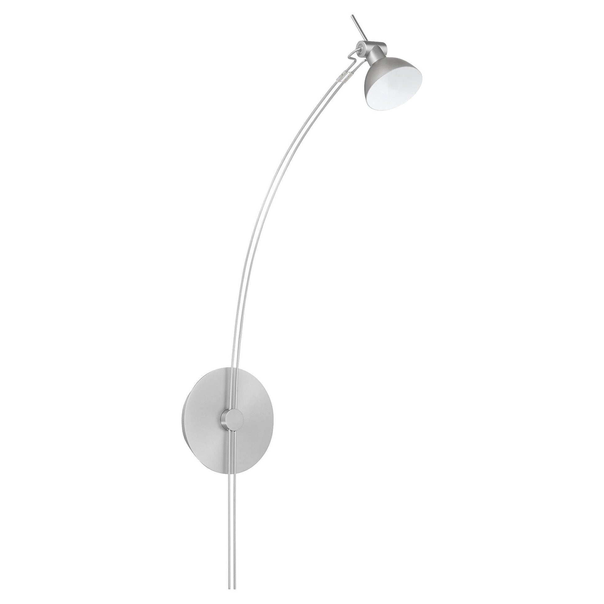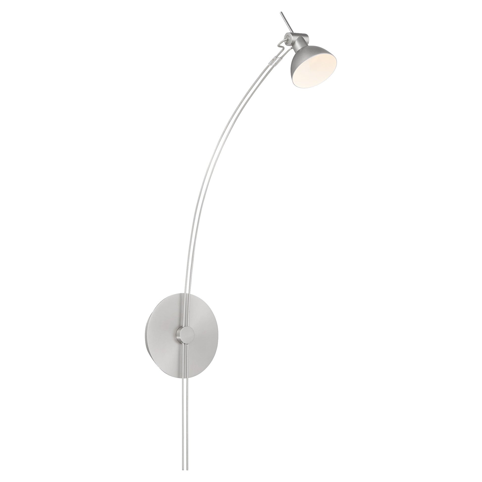Quorum RICARDO 943-65 LED Picture Light 90CRI 3000K - Satin Nickel finish. The Quorum Ricardo picture light offers a fresh take on mid-century industrial design. Its double-wire neck draws the eye upward, highlighting the sleek, minimalist pommel. With a museum-quality feel, the Ricardo complements a range of settings, from modern to transitional, adding a sophisticated accent to any space. Finished with aged brass, matte black, or satin nickel, this series enhances your artwork or gallery wall with quality illumination and variety. Quorum RICARDO 943-65