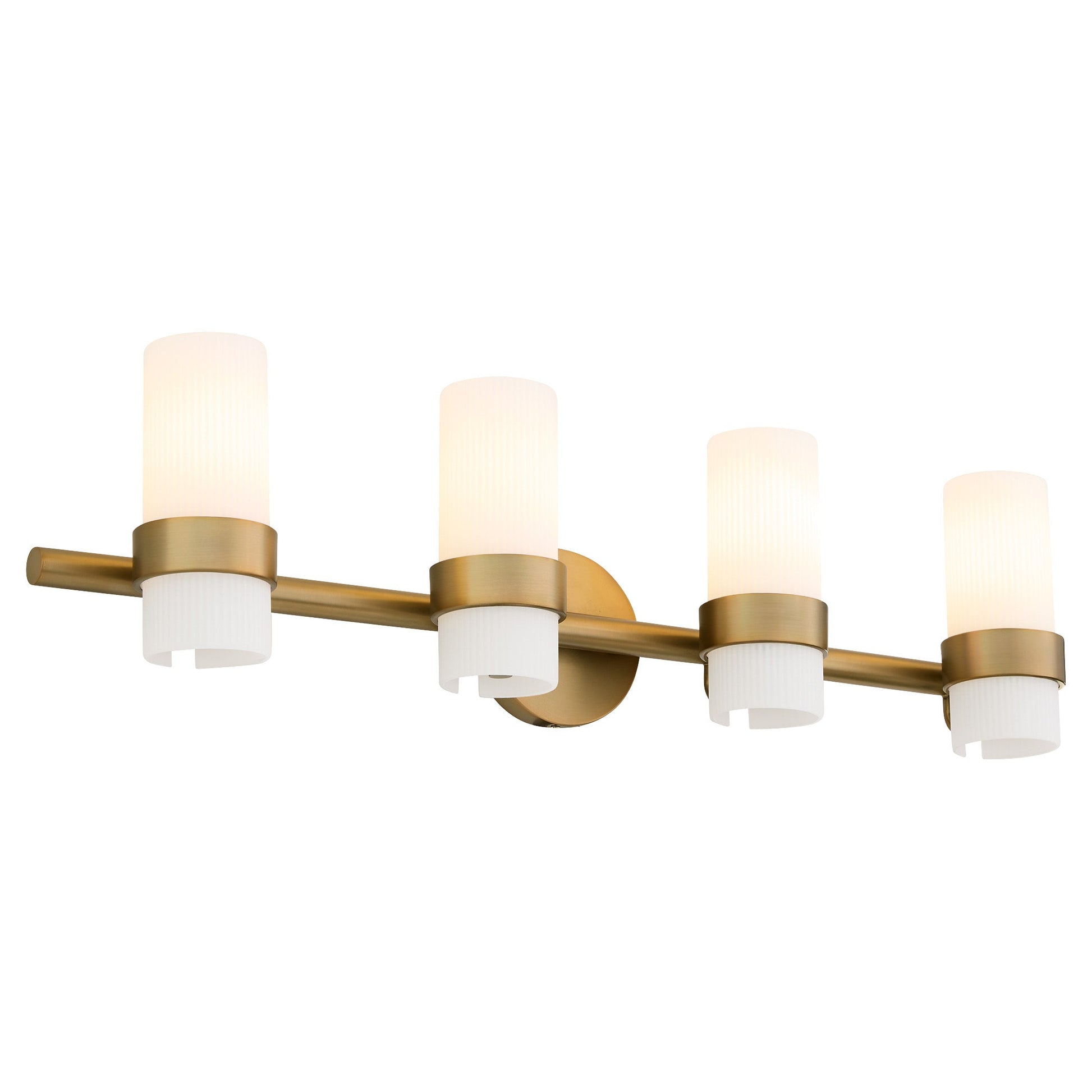Quorum Sojourn 5169-4-47 Vanity Light Fixture, UL Damp Rated, Brushed Brass. 100 Watt, Medium MPN: 5169-4-47 Sojourn